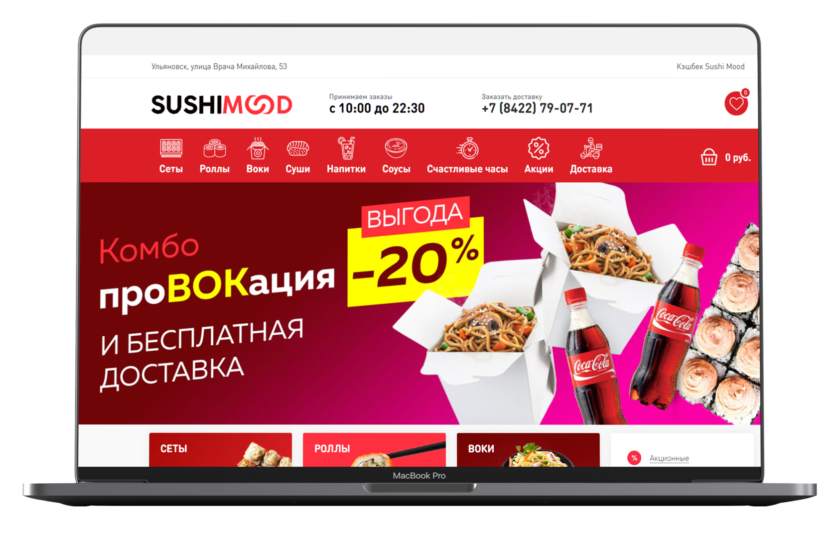 Увидев прорывные результаты нашей интенсивной работы, Sushi Mood уже через 3 месяца заказал нам запуск сайта, который мы успешно реализовали.